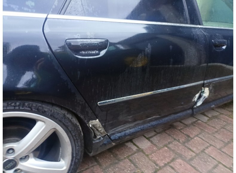 - drzwi przód , tył , element nadkola tył prawy , połamaną felga tył prawy ( lezy w bagażniku) 20', zderzak tył prawy wahacz tyl ( tuleja do wymiany).